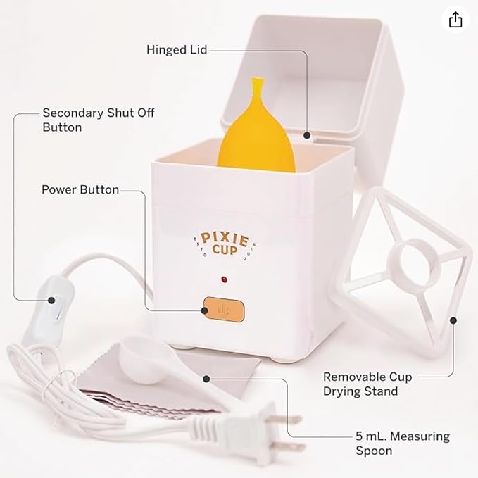 Pixie Menstrual Cup Steam Cleaner - Wash Your Cup + Kill 99.9% of Germs with Cleanser Steam for Feminine Care - 3 Minutes and Your Period Cup is Sterile! Automatic Shut Off - FSA Eligible (White)