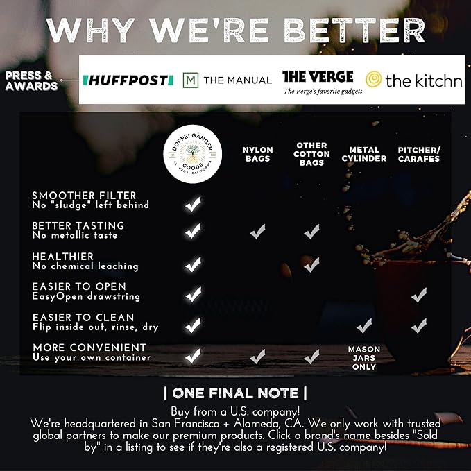 • ☕️ ❛ Effortless Clean Up ❜ Just turn the cold brew bag inside out, rinse under the faucet, and then air dry.