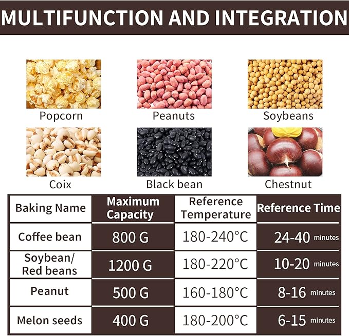 DIYAREA Coffee Roaster Machine for Home Use, 800g Capacity Electric Coffee Bean Roaster Machine with Timer 0-240℃ Non-Stick for Cafe Shop, Nut, Peanut, Black Bean, Soybeans 110V 1200W