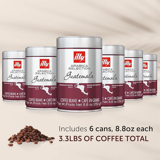 illy Whole Bean Coffee, Guatemala Single Origin Dark Roast, 100% Arabica, Premium Italian Coffee, Ideal for Espresso, Drip, Moka and French Press Brewing, 8.8oz, 6 Pack