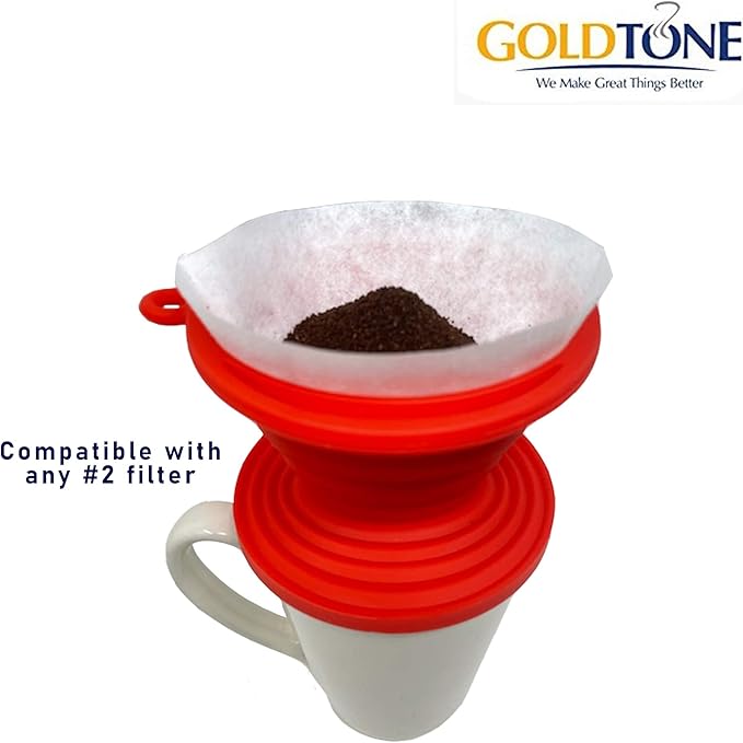 GOLDTONE Collapsible Silicone Portable Reusable Coffee Dripper w/Carry Clip & Scoop (Collapsible Pour Over, Frameless Filter & Scoop)