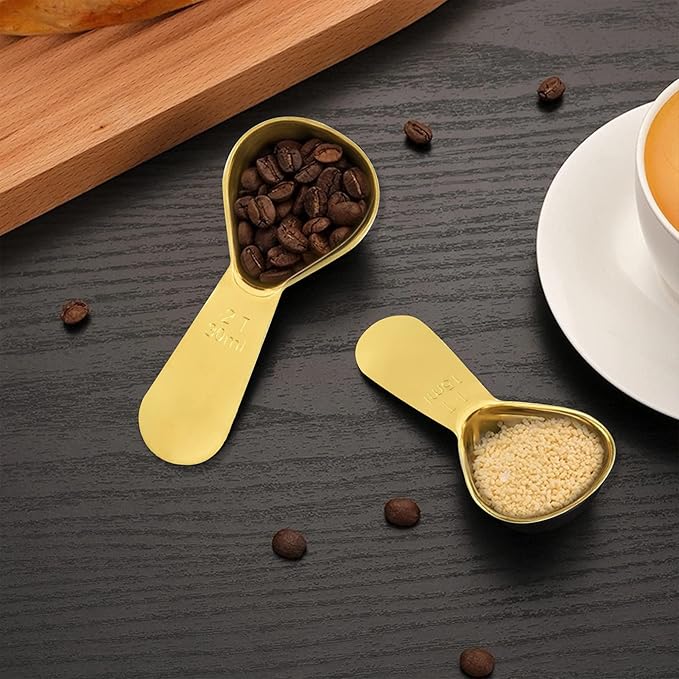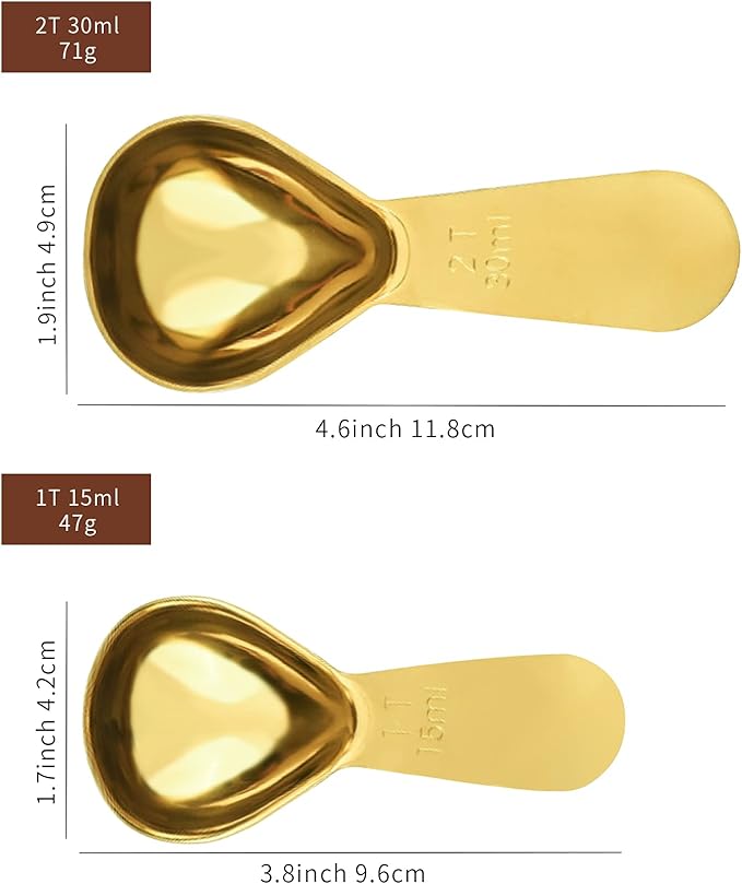 2 Pieces Stainless Steel Coffee Scoops Set(1 Tbsp,2 Tbsp) Durable Coffee Spoons with Ergonomic Handle Measuring Tablespoon for Canisters Tea Sugar Ground Coffee Whole Bean Milk Powder Flour (Golden)
