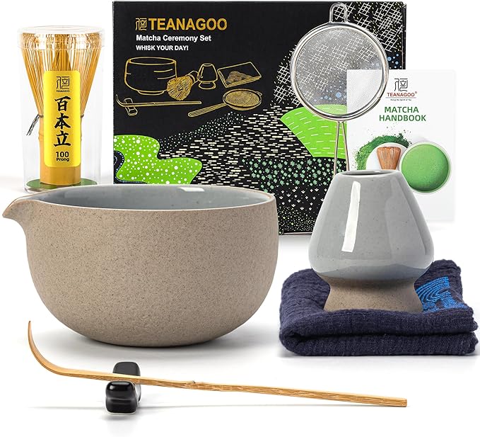 • 7-PCS MATCHA WHISK SET: 1*Ceramic Bowl (chawan) 510 Ml/18 Oz, 1*Bamboo Whisk, 1*Bamboo Scoop (chashaku), 1*Cermaic Whisk Holder, 1*Ceramic Scoop Stand, 1*Cotton Tea Cloth (chakin), 1*Matcha Powder Sifter.includes All Accessories