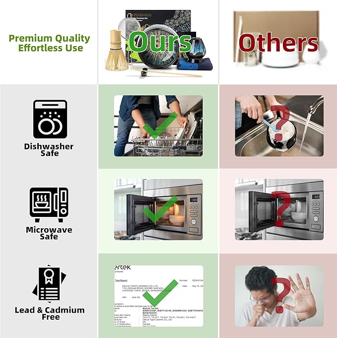 • HIGH SAFETY & QUALITY: Our Handcraft Matcha Whisk, About 100 Fine Tines(百本立),100% Crafted From High Quality Bamboo With A Vegetable Oil Finish To Enhance Its Durability. Additionally, Our Ceramic Bowl Has Lead-free And Mercury-free Test Reports.food-grade And Eco-friendly