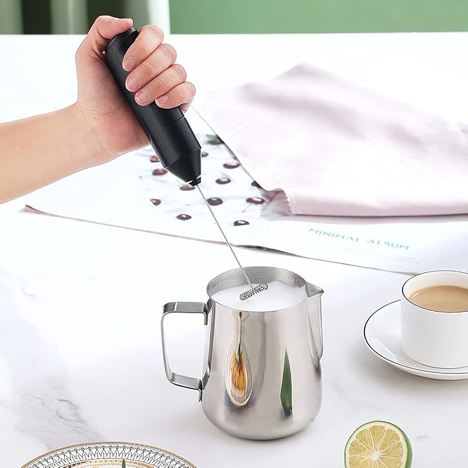 • The perfect combination of a milk frother and a latte art pen, it has everything you need to make a perfect latte at home or at the office, the milk frother can be used to make latte foam or steam milk, measure liquids, serve milk or Creamy; Latte Art Pens allow you to create a variety of beautiful coffee patterns, perfect for making espresso, cappuccino, hot chocolate and more.