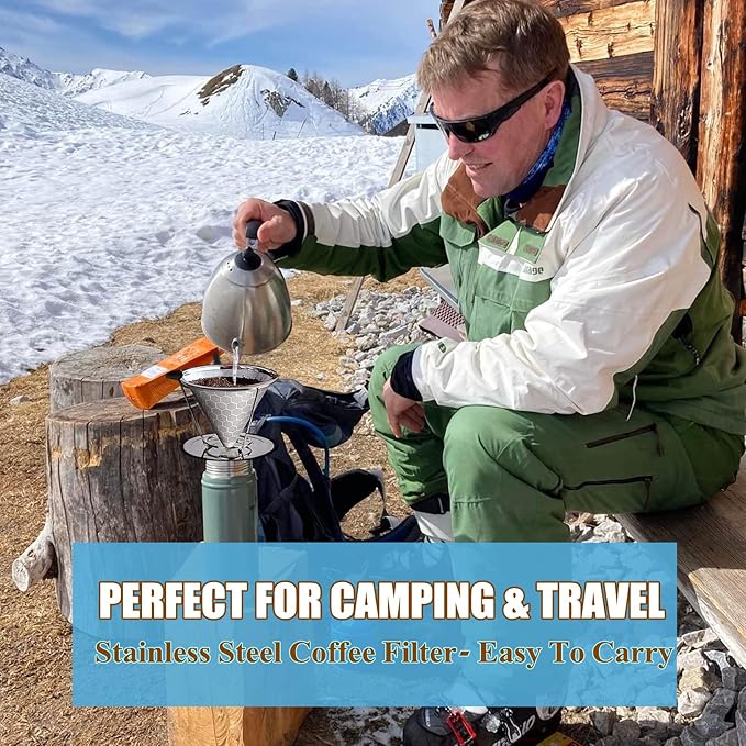 • HANDY TO TAKE PLACES→Easy to carry, and perfectly for home, office time, traveling, camping and business trips, etc. The detachable stand design good fit most cups, mugs or carafes, including other coffee makers.