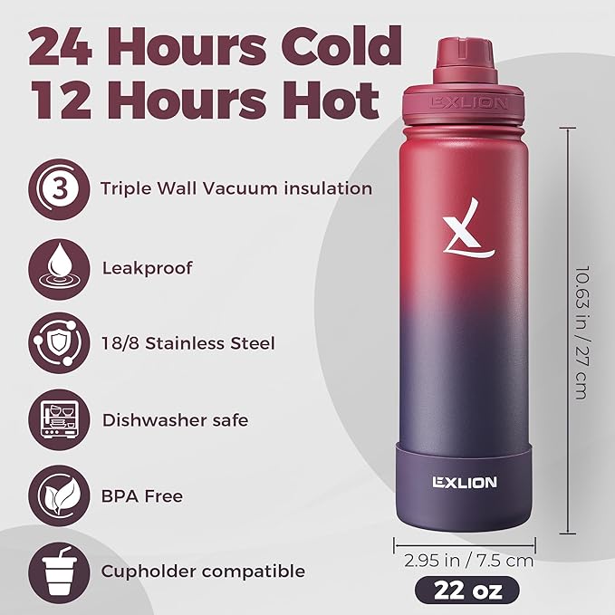 • ✅ SILICON BOOT/SLEEVE- Lexlion 22 oz stainless steel water bottle comes with an advanced shock-absorbing silicone material that helps to protect against dents, dings, scratches, and all the imperfections of your 22 oz insulated water bottle. You are protected against an inevitable drop in your water infuser bottle. This will extend the life of your flask. The infuser water bottle is BPA-free and made of soft and highest-quality material.