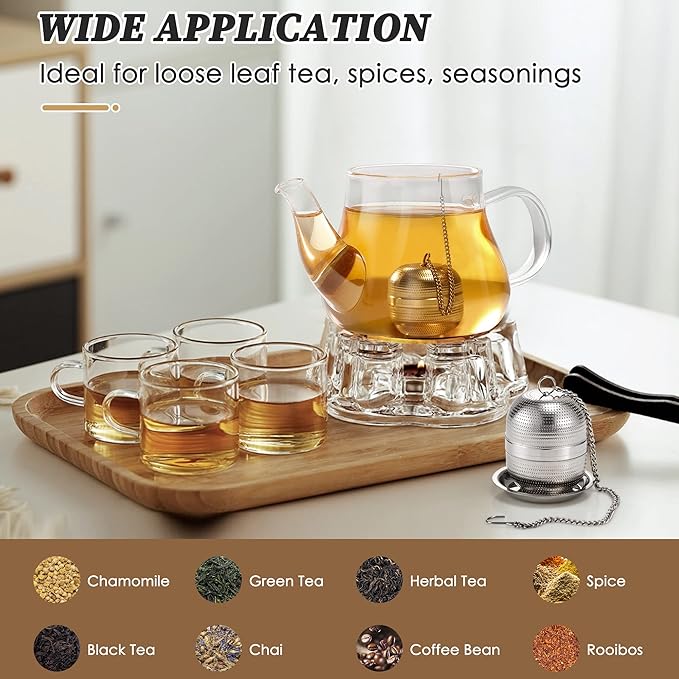 • Extra Fine Holes keep even very fine-leaved tea in (such as Rooibos, Herbal tea and Green teas). Tons of holes allow water to flow more freely. So the tea diffuses quickly. Nothing gets through this except for the water!