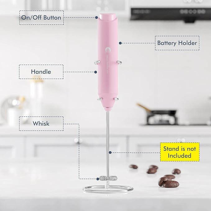 Powerful Milk Frother Handheld Foam Maker, Mini Whisk Drink Mixer for Coffee, Cappuccino, Latte, Matcha, Hot Chocolate, No Stand, Pink