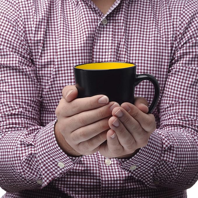 • DURABLE & COMFORTABLE DESIGN – 12 ounce Two-Tone Coffee Mugs made of ceramic in the classic latte style. Each medium ceramic coffee mug fits in the hand perfectly so you can enjoy your favorite hot or cold beverage. The high curved grip makes for easier drinking and less spills.