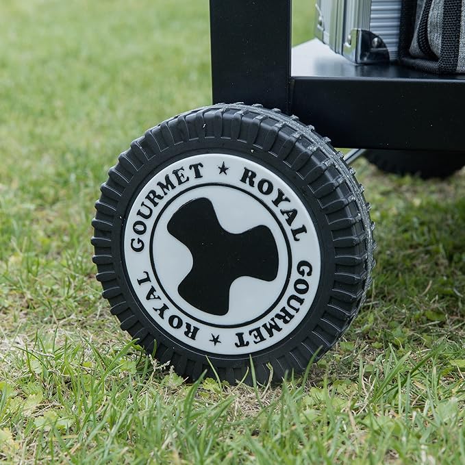 Royal Gourmet PC3404S Rolling Dining Table with Trash Bag Holder, Outdoor Garden Patio BBQ Kitchen Food Prep Table Cart, 34"L x 20"W Stainless Steel Tabletop, Silver & Black