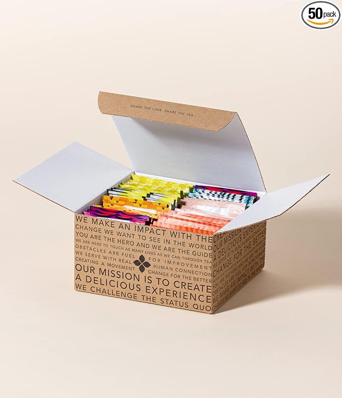 • CREATE A PERFECT BREW - Each tea assortment box includes 50 individual herbal teas sachets, enough for 50 strong cups of delicious tea! Each of our herbal tea bags are blended for one 8 oz cup of tea. For our herbal tea blends, brew water to 206 degrees Fahrenheit and steep for 3-5 minutes, or up to 7 minutes for stronger notes.