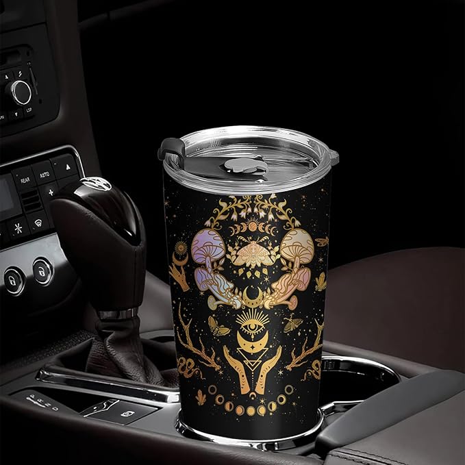 Mushroom Tumbler, Mushroom Gifts for Women, Moth Moon Tumbler,Sun Moon Cup, Witchy Birthday Gifts Constellation Insulated Tumbler With Lid Coffee Mug 20 OZ