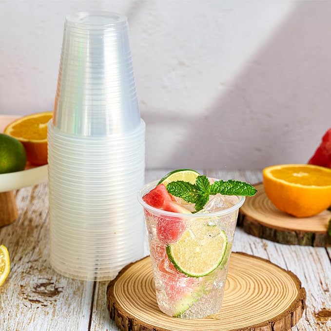 Turbo Bee 1000 Pack 12oz Plastic Cups,Disposable Clear Drinking Cups,Hot and Cold Drink Container for Water, Juice, Soda,Coffee