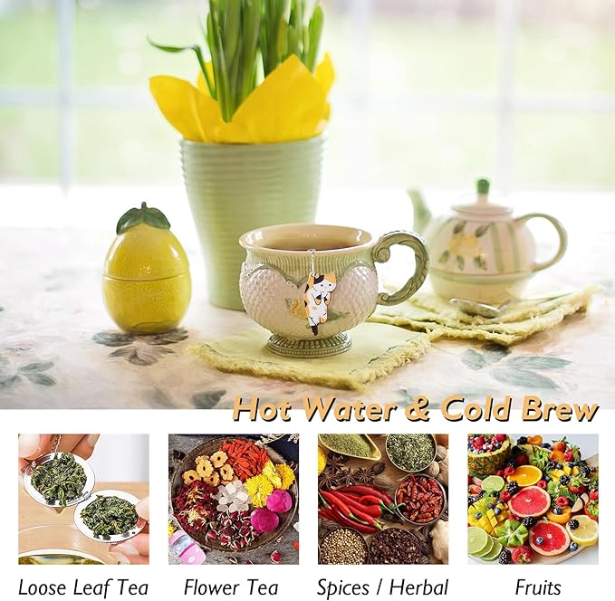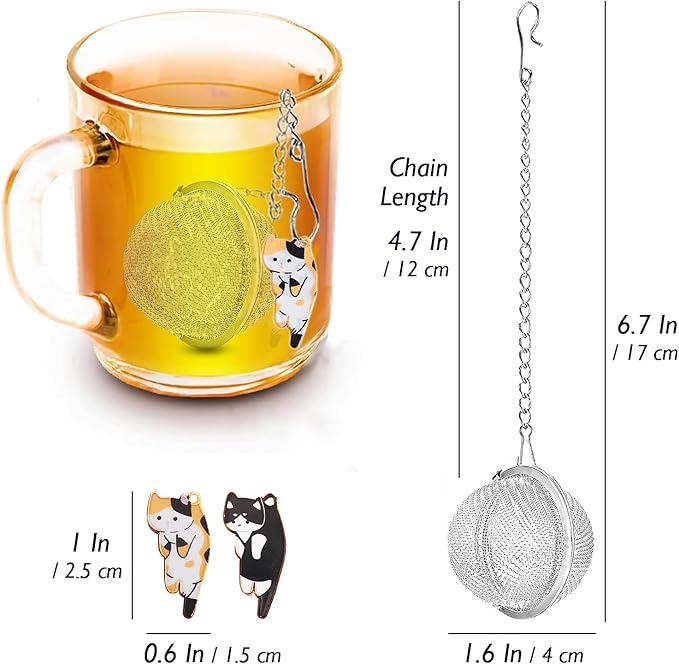 • ♨ Easy to Use - Simply open the tea ball mesh, add your desired loose leaf tea, and close them securely. The attached cat charm pendants make it convenient to handle and retrieve the infusers from your cup or teapot. Enjoy the simplicity and efficiency of these tea steepers.
