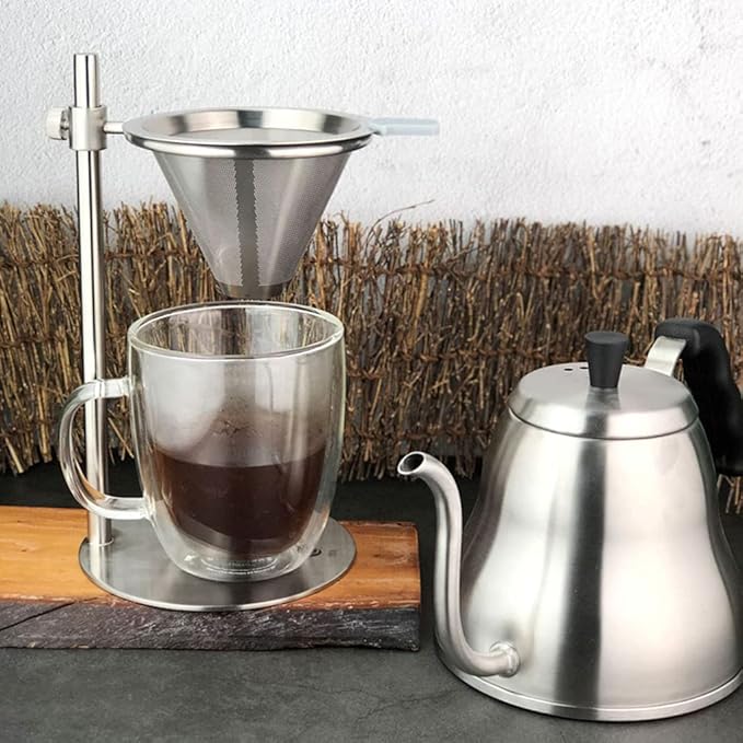 Adjustable Stainless Steel Pour Over Coffee Maker Station Stand With Reusable Double Filter Freestanding Drip Cone Brewer Directly Into Mug Cup Adjustable Stainless Steel Coffee Brewer