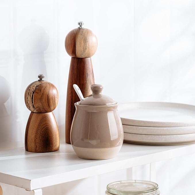 • Thoughtful Design: This sugar bowl comes with a snug-fitting lid and a handy mini spoon. The lid keeps sugar fresh and dust-free, while the spoon ensures precise portions without messy hands. Plus, the built-in spoon rest keeps everything tidy, and the wide-mouth design makes filling and scooping effortless.