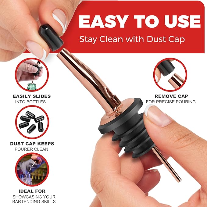 GOOD POUR CONTROL - The slight taper design offers control, accuracy, and a consistent pour speed every time. Use these for home or professional bar. These pourers can pour precisely without drip or difficulty. Consider these to be bar pour spouts. Using these like speed pourers for liquor bottles or wine pourers is easy. These bar pour spouts are great to use as liquor pourer or liquor spout. Use these liquor pour spout for smooth control.