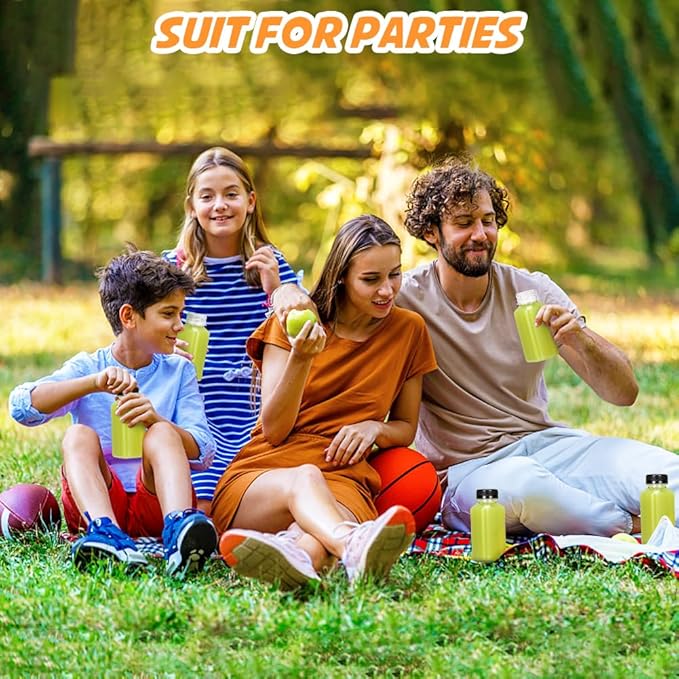 Leak-free airtight cap - The 8oz juice bottles with caps ensures an airtight and leak-proof seal. So, whether you're carrying it with you or in the pantry, you don't have to worry about drinks leaking out.