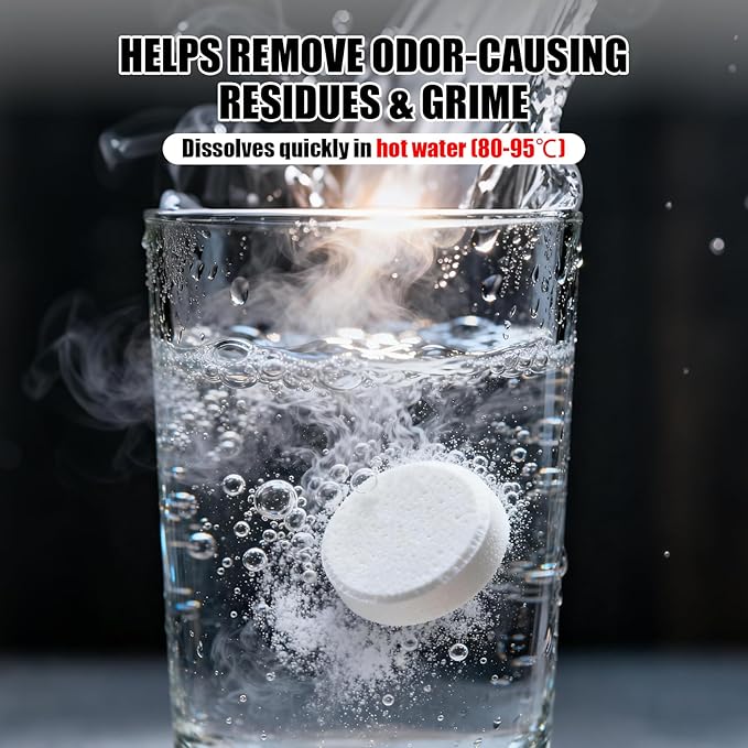 • MAINTENANCE SCHEDULE: Regular use helps maintain optimal coffee taste and machine performance by removing built-up residue. Effortless Cleaning: Just drop a tablet into the water reservoir, run a brew cycle, and rinse. No scrubbing or harsh chemicals required—perfect for busy coffee enthusiasts
