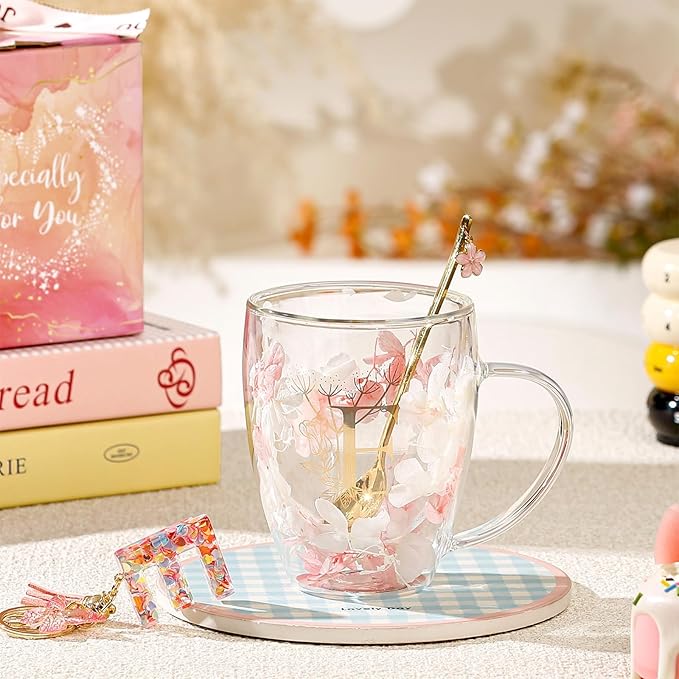 • ✨ Unique Double Walled Glasses Design: Made of heat and condensation-resistant borosilicate glass, it features excellent heat insulation, keeping your fingers safe and protected from heat. This cute cups is suitable for both cold and hot drinks, perfect for a wide range of beverages, including coffee, iced coffe, tea, cappuccino, latte, hot chocolate, juice, milk, and other hot or cold drinks. The clear glass showcases the beautiful dried flowers inside, making it both a practical drinking vessel and an exquisite decorative piece.