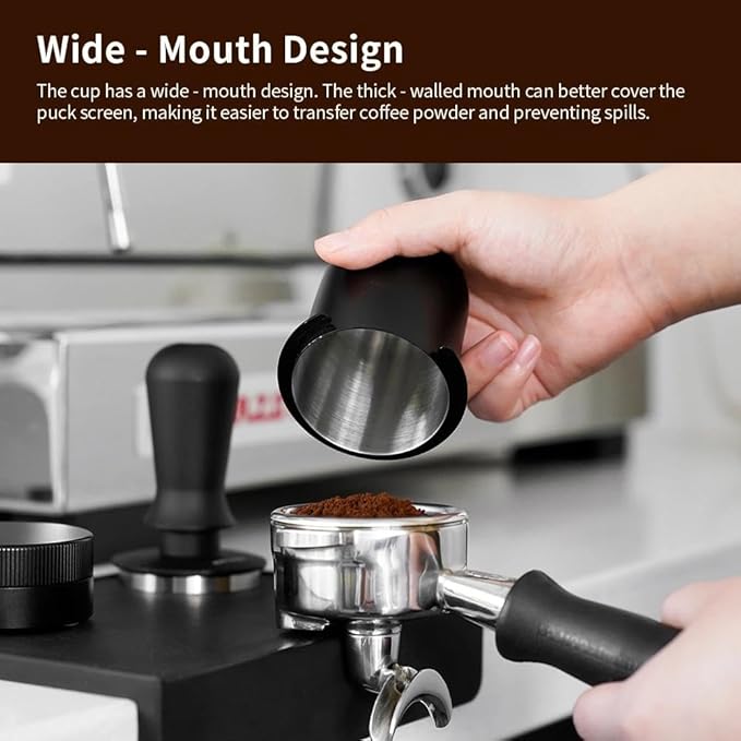 • Wide - Mouth Design : The cup has a wide - mouth design. The thick - walled mouth can better cover the puck screen, making it easier to transfer coffee powder and preventing spills.
