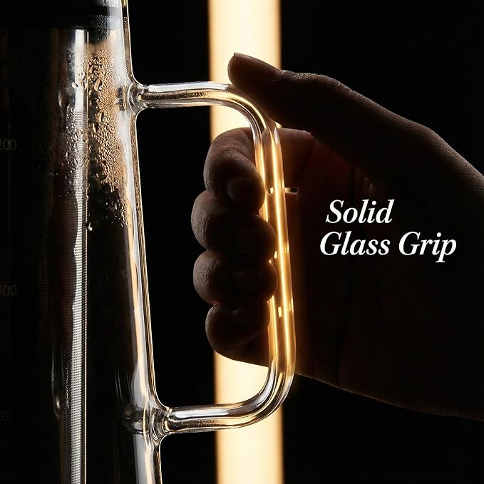 • [BUILT TO LAST, YOU CAN TRUST] Food-grade stainless steel filter & lid, thickened lab-tested borosilicate glass and integrated glass handle (sturdier than plastic!), BPA-free silicone seals, a non-slip rubber base, and dishwasher-safe, make it quite easy for everyday use