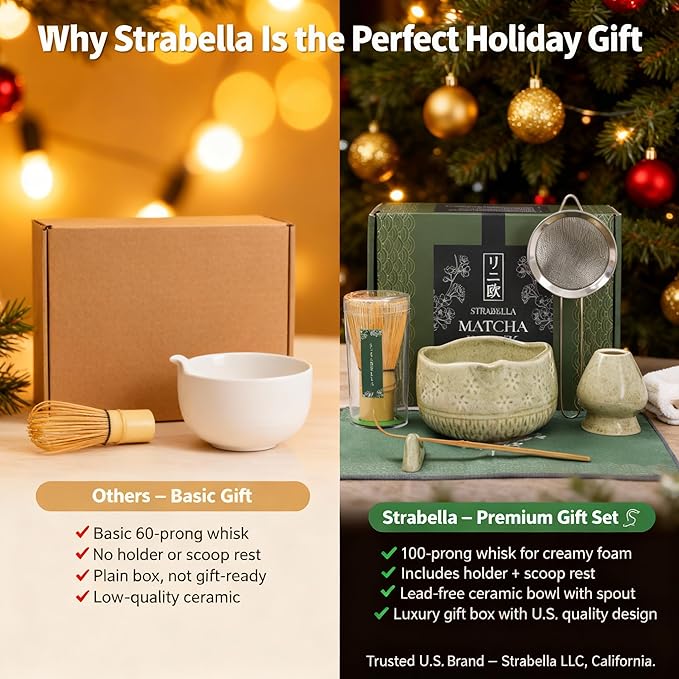 • Gift-Ready & Satisfaction Guaranteed: Elegantly packaged in a sturdy gift box, every component is securely nestled in protective foam – a delight to unbox for any tea lover. It’s an ideal gift for birthdays, holidays, or housewarmings, sure to impress both beginners and seasoned matcha enthusiasts. Strabella stands behind its product quality with a satisfaction guarantee, ensuring a worry-free purchase. If you have any concerns, our friendly customer support is ready to assist, making your matcha journey truly risk-free.