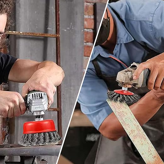 • Package Included: 4"knotted wire wheel brush * 2, 4"crimped wire wheel brush * 2, 3"Knotted wire cup brush * 2, 3"crimped wire cup brush * 2, Glove *1, Goggle * 1