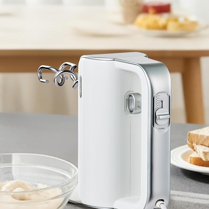 warran Master 5-Speed Electric Hand Mixer with Turbo Boost, Stainless Steel Whisk, Beaters, Dough Hooks & Milk Frother, Lightweight Handheld Mixer for Baking & Coffee, Light Olive Green
