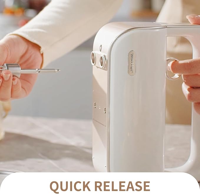 warran Master 5-Speed Electric Hand Mixer with Turbo Boost, Stainless Steel Whisk, Beaters, Dough Hooks & Milk Frother, Lightweight Handheld Mixer for Baking & Coffee, Champagne Gold