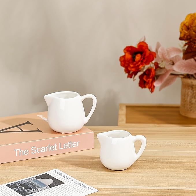 • Nice Size and Color: Simple white mini ceramic creamer pitcher with handle, available in several sizes: 1.5 oz/45 ml, 2.9 oz/85 ml, 4.3 oz/125 ml, to meet your dining needs