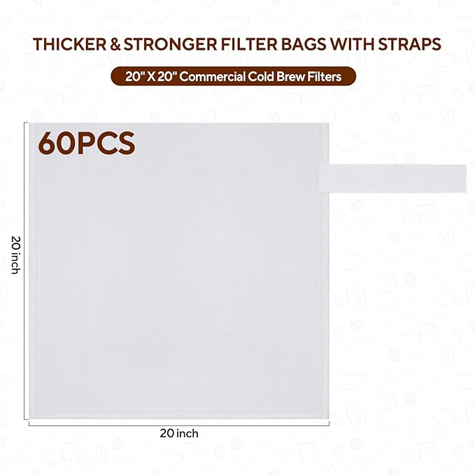 Hogurity 60PCS Commercial Cold Brew Coffee Bags with Drawstring, 20" X 20" Disposable Coffee Filters for 5 Gallon Buckets and Commercial Model Cold Brew Coffee Makers
