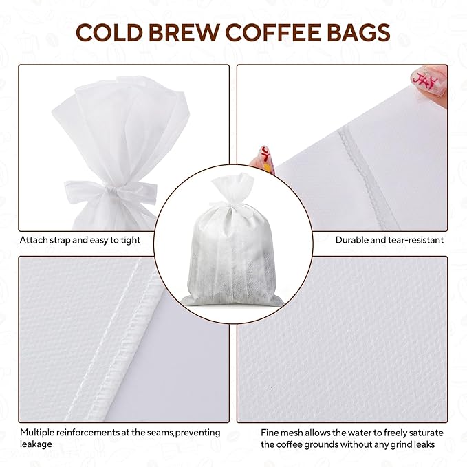 • REINFORCED CONSTRUCTION & DURABILITY - These cold brew bags feature strengthened seams and premium non-woven fabric, resisting tears even when fully saturated. They reliably filter fine sediments while preserving the coffee's authentic flavor and aroma throughout the brewing process.