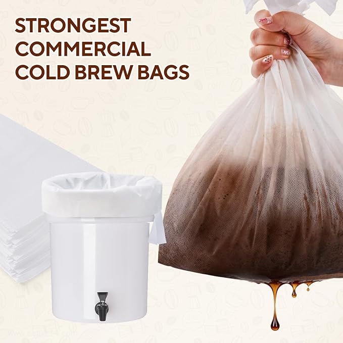 • EFFORTLESS BREWING & DISPOSAL - Simply add coffee to the cold brew coffee bags, place in your bucket, and steep. The secure drawstring prevents leaks, and disposal is quick and clean—no messy equipment to wash. Perfect for consistent, hassle-free cold brew preparation.