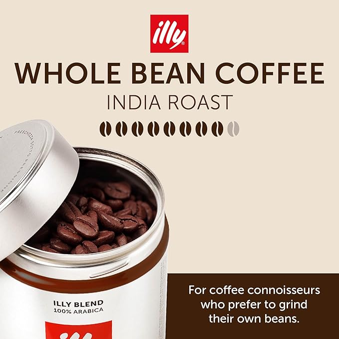 • Sealed for Freshness: illy’s patented pressurized packaging seals in the coffee’s precious aromas and extends the freshness for our whole bean coffee until you’re ready to grind, brew, pour and sip.