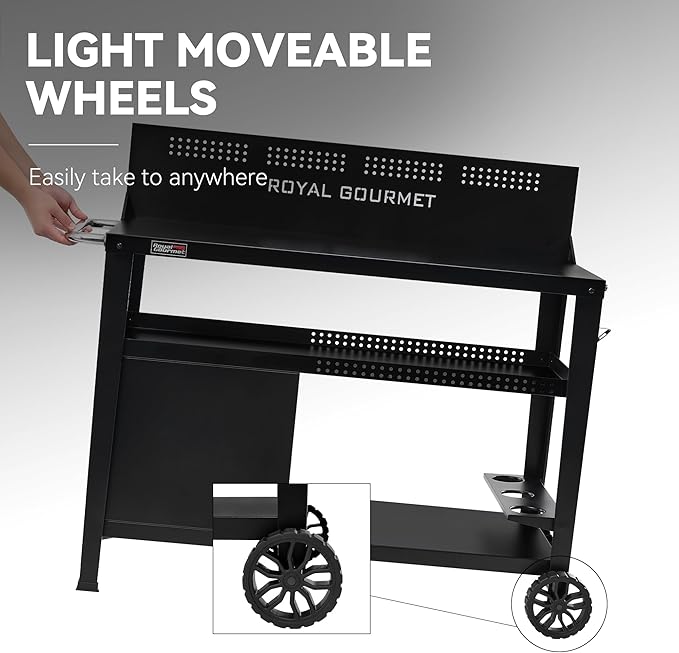 • Solid Table Top: The 43" L x 20" W tabletop with wind guard facilitates an ideal workplace to serve both indoor and outdoor cooking needs, like preparing food aside when cooking