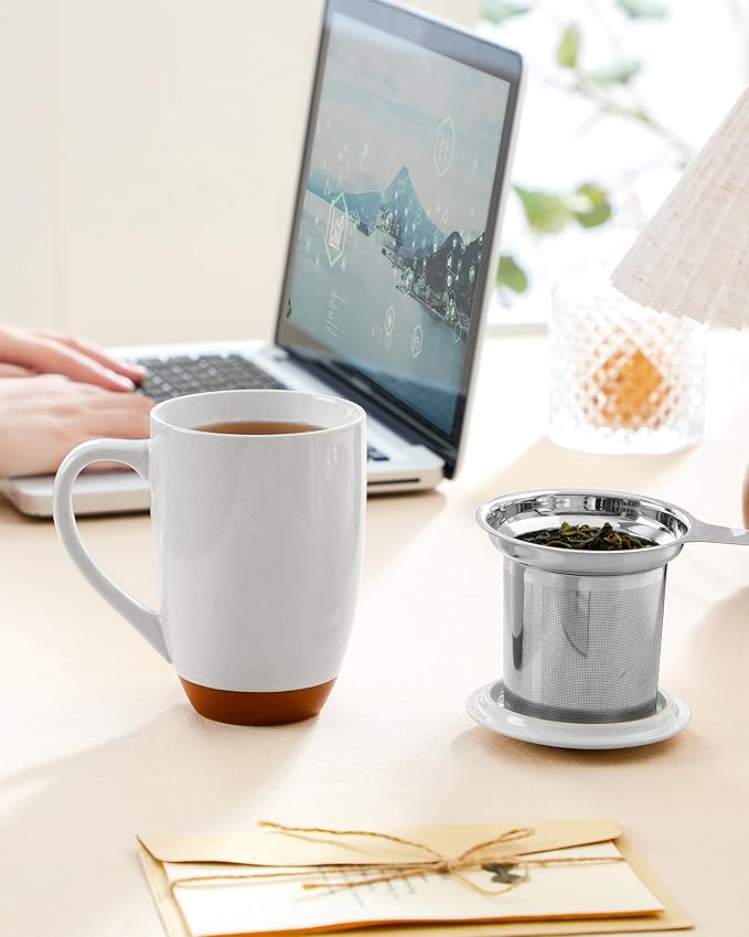 • 【MULTI-PURPOSE LID DESIGN】The matching ceramic lid keeps your drink warm while steeping and doubles as a coaster for the infuser after brewing, ensuring a clean and tidy counter or desk.