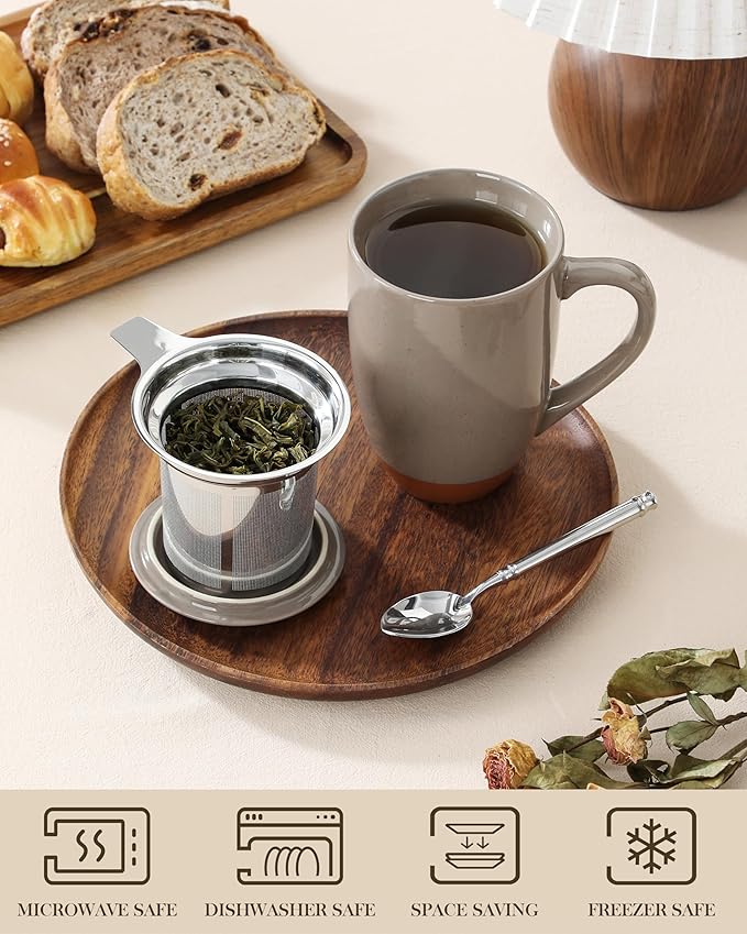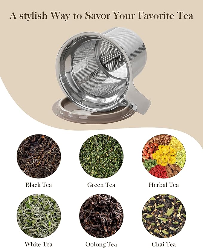 • 【MULTI-PURPOSE LID DESIGN】The matching ceramic lid keeps your drink warm while steeping and doubles as a coaster for the infuser after brewing, ensuring a clean and tidy counter or desk.