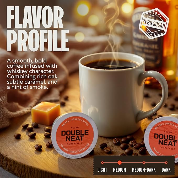 Double Neat Organic Whiskey Coffee Pods – Keurig Compatible – Single Serving Bourbon Coffee K Cups – Unique Coffee Gifts for Men – Premium Gourmet Coffee Pods Gift Set – 10 Count
