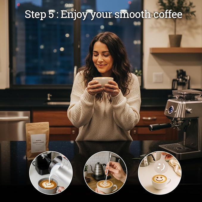 • 【IDEAL GIFT FOR COFFEE LOVERS】The 54mm dosing funnel locks onto portafilters to prevent spills during grinding. The brush cleans mess-free, while the puck screen protects machine heads from residue. The stainless steel frothing pitcher is marked with scales on the inside and outside for easy and accurate measurements, it is dishwasher safe.Professional latte art pens and decorative stencils can draw beautiful coffee patterns. The exquisite coffee stirring spoon is the perfect coffee companion