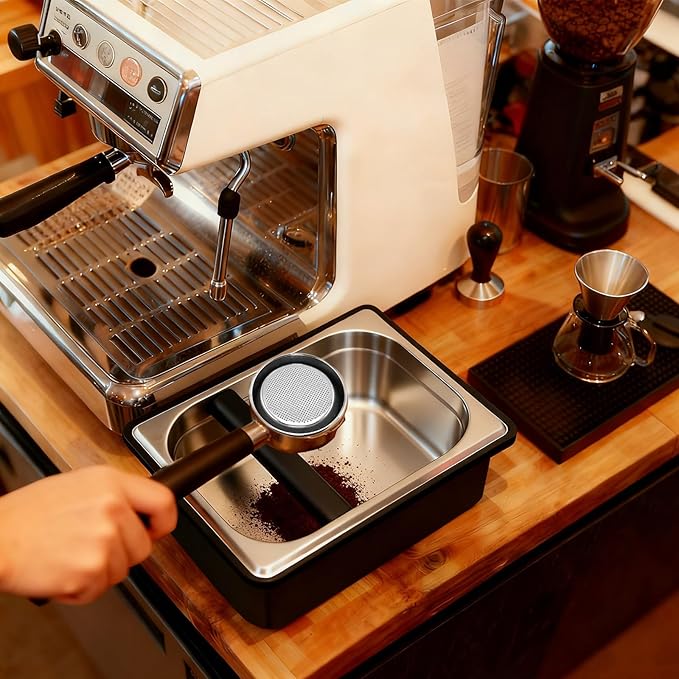 • Equipped with four detachable rubber anti-slip pads at the bottom, it resists sliding during knocks; it also reduces noise and protects your coffee bar countertop from scratches