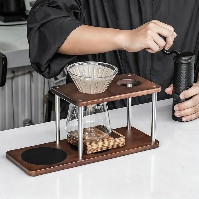 • Organize with Premium Natural Wood Craftsmanship: Create a dedicated, clutter-free station for your pour-over essentials, including drippers and server, ensuring a smooth and stable brewing workflow. Features a rich Sapele wood texture and sleek stainless steel accents.