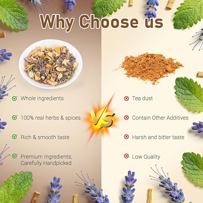 • Natural Ingredients : Made with real natural raw materials (such as cinnamon, apple slices, mint leaves, etc.), without artificial additives or preservatives. Every sip delivers a pure herbal tea aroma with a mild taste, making it great for daily consumption and helping to maintain good health