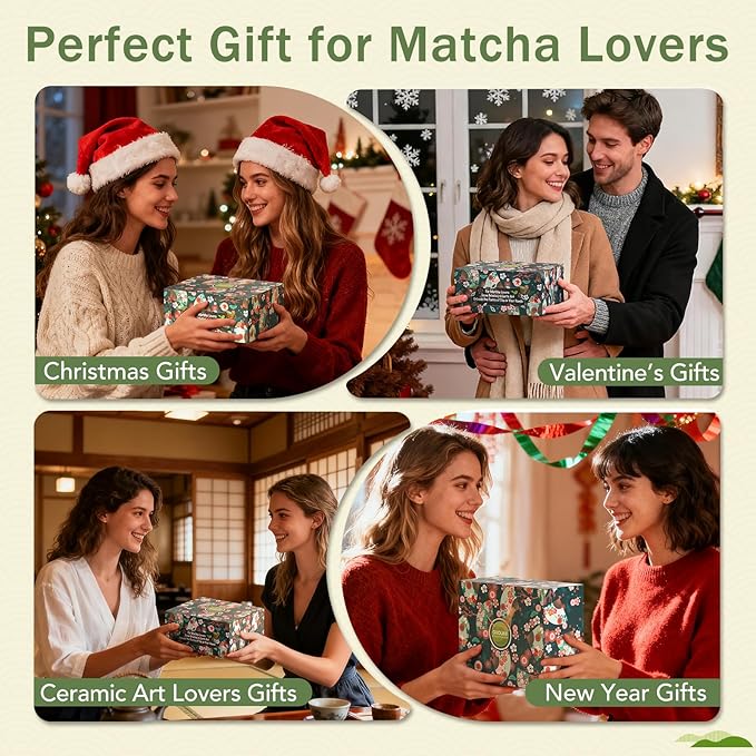 • Japanese-style gift box:As a Happy New Year 2026 gift for women/man. Thoughtful present for every occasion. Exquisite packaging pattern. Includes a care guide & steps for making matcha.The dark green packaging matches perfectly with Christmas trees.Ideal for Tea Beginners: Start your matcha journey with professional tools for matcha lover. Design lovers: Elevate home decor with functional art. Matcha gift: Also good for weddings, housewarmings, or as a corporate gift.