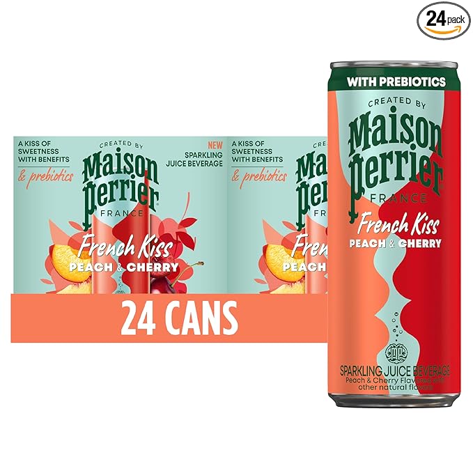 Maison Perrier French Kiss Sweetened Sparkling Juice Beverage, Peach & Cherry Flavors With Real Fruit Juices, 24Pk