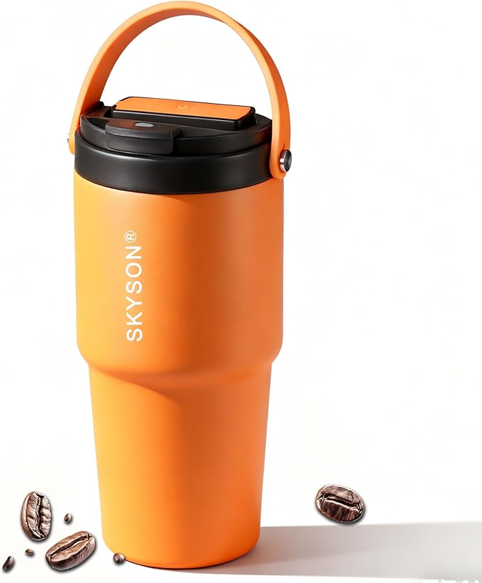 minkah Insulated Stainless Steel Coffee Tumbler,20 oz Reusable Iced Coffee Cup, Hot Coffee Travel Mug (Orange+Grey)