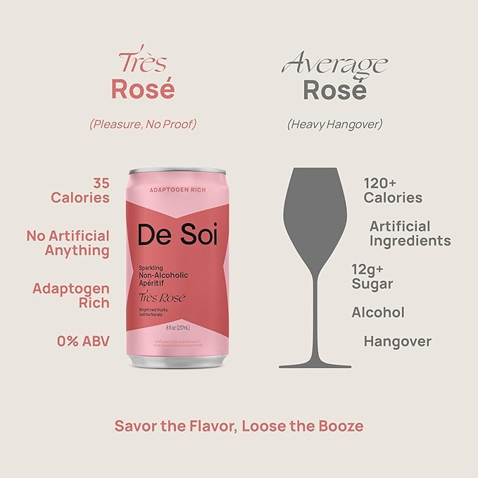De Soi Wine Sampler (Tres Rose + Purple Lune) Mocktails NA Drinks 12-pack Adaptogen Drink, Sparkling Drink with Calming Botanicals, Mocktails Drinks, Gluten Free, No Artificial Flavors