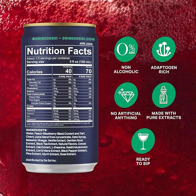 • SOPHISTICATED SOCIAL DRINK REPLACEMENT - A zero-proof sparkling mocktail crafted with adaptogens for gatherings, celebrations, or mindful solo moments. A flavorful, functional alcohol-free drink that supports mood enhancement and wellness routines.