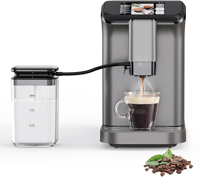 • Intuitive LCD Touch Color Screen & Auto Milk Frother Navigate brewing settings effortlessly through a bright LCD color touch screen. The automatic milk frother easily creates creamy cappuccino, smooth latte, and other milk-based drinks, delivering a delicate and velvety texture without manual effort.